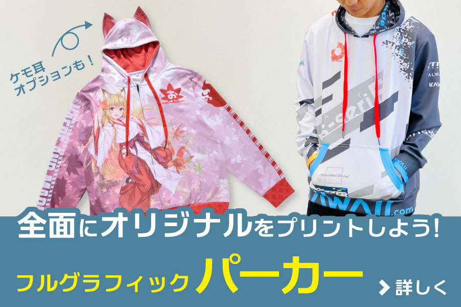 商品一覧 Tシャツ セットインスリーブ ラグランスリーブ ドルマンスリーブ 長袖Tシャツ パーカー・スウェット プルオーバーパーカー ジップパーカー オーバーサイズパーカー もふもふパーカー[NEW] ドライジップパーカー ジップスウェット ケモ耳 パーカー リバーシブルパーカー 秘密のジップパーカー 法被(ハッピ) 半纏 フルグラフィック法被 シャツ 半袖ボタンシャツ 長袖ボタンシャツ 半袖カジュアルシャツ アロハシャツ 開襟シャツ ポロシャツ ベースボールシャツ アウター ウィンドブレーカー スポーツパーカー マウンテンパーカー コーチジャケット リバーシブルスカジャン ハーフパンツ ハーフパンツ 男性用水着(サーフパンツ) アンダーウェア メンズボクサー レディースショーツ バッグ トートバッグ トートリュック ミニショルダー エコバッグ 三角ポーチ BOXポーチ フラットポーチ サークルポーチ ペンケース ブランケット もふもふブランケット リバーシブルブランケット 2WAYトリコットブランケット 冷感ブランケット マフラーブランケット フードブランケット クッションブランケット サークルブランケット[New] ハートブランケット[New] タオル・バスタオル ハンドタオル フェイスタオル マフラータオル スポーツタオル バスタオル サークルタオル フードタオル 枕グッズ 枕カバー 抱き枕カバー クッション 膝枕クッション 中綿入りクッション スクエアクッションカバー ダイカットクッションカバー 猫耳丸形クッション サイコロクッション ストラップ 正方形クッションストラップ ダイカットクッションストラップ ネックストラップ タペストリー B1タペストリー B2タペストリー 等身大タペストリー ミニタペストリー 二重タペストリー B2布ポスター その他商品 プレイマット・マウスパッド フロアマット マイクロファイバークロス マフラー ネクタイ ランチョンマット エプロン 布マスク 色校正 ご利用に関するご案内 お支払い方法 ご注文の流れ 納期について 返金・返品条件 送料 テクニカルガイド テンプレート デザインデータの作成方法 データの入稿方法 色校正について 著作物に関しての注意事項 会社案内 採用情報 フルグラの秘密 会社概要 法人のお客様へ お問い合わせ よくあるご質問 生地サンプル請求 お得情報 オリジナル法被企画応援キャンペーン クチコミ割引