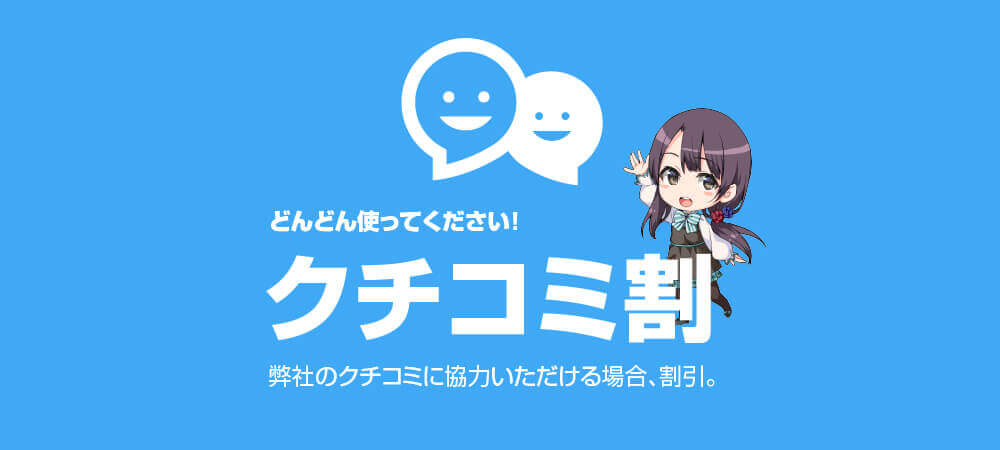 弊社HP/SNS内にアップする「クチコミ」にご協力いただける個人・法人・団体の方を対象に割引を行います。この機会にふるってご利用ください。