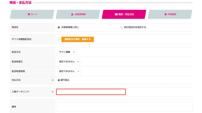 パスワードを設定した場合や別途連絡事項などがある場合はご注文画面の備考欄に記載してください。