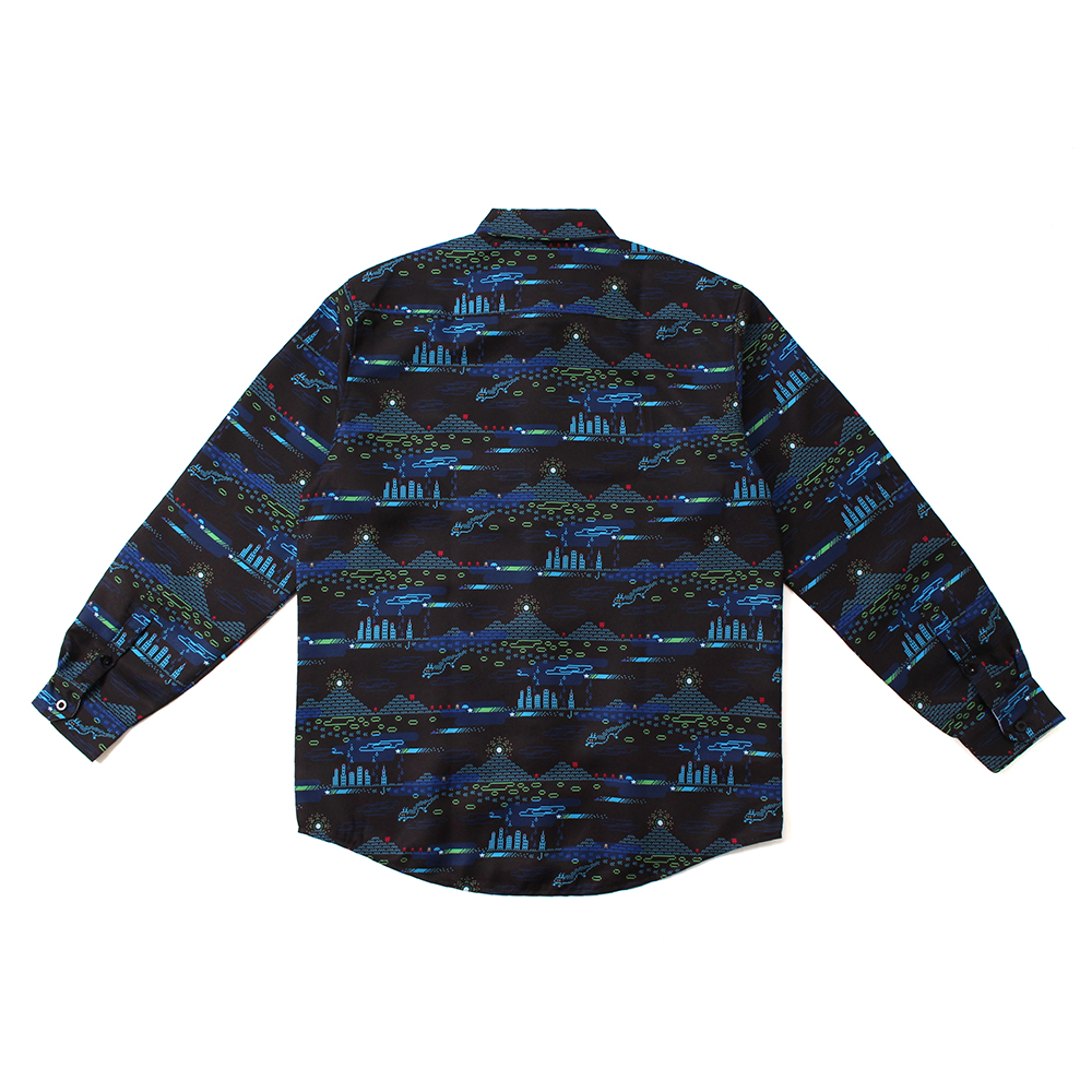 昇華転写印刷で全面プリント可!オリジナルデザイン長袖ボタンシャツ