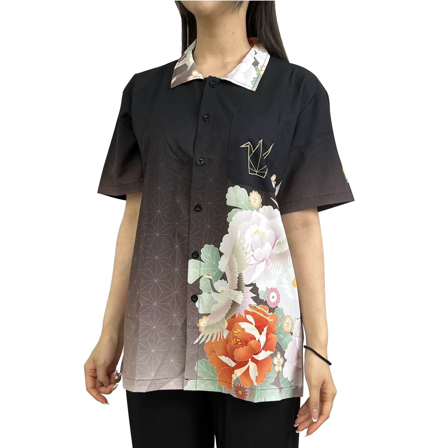 アロハシャツに非常に似ている形状で、ポケットが基本仕様に入っており、アロハとは異なり裾にスリットが入っていません。