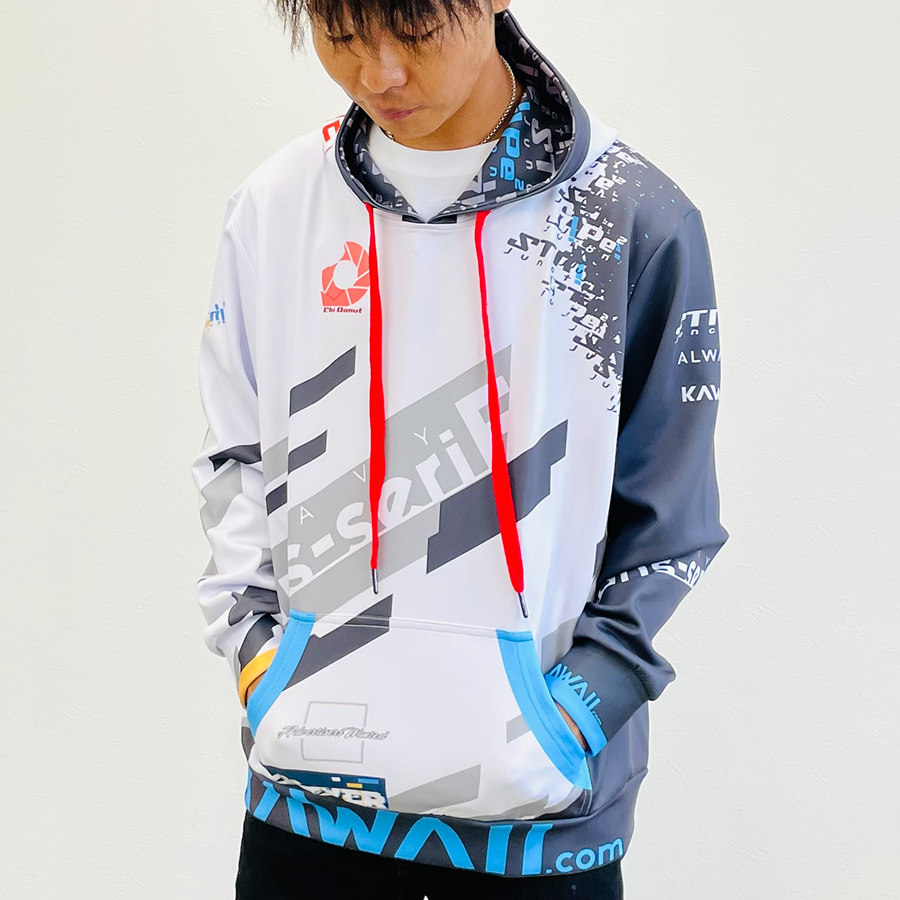 アパレルメーカーが本気を出して制作した、今までになかった本格的なフルグラフィックパーカーです。フードの紐も選べます。