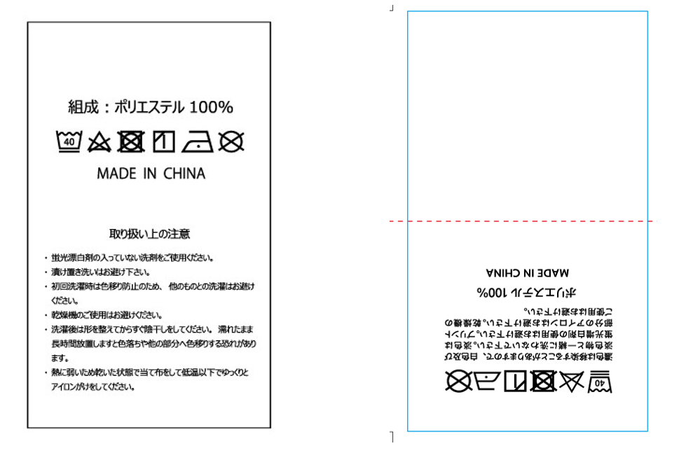 洗濯タグには製品の材質の他に販売者情報が必要です。