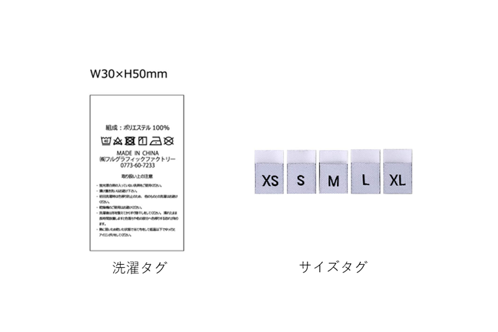 ただし、フルグラフィックファクトリーで製造した場合フルグラフィックファクトリーの表示名で洗濯タグやサイズタグを無料で提供しています。