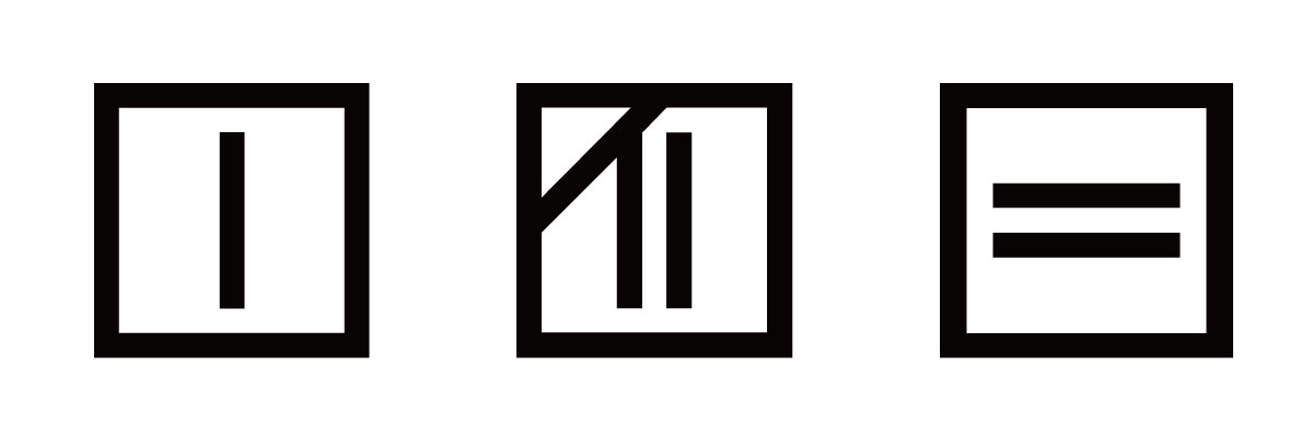 四角の中の縦線は吊り干し推奨。横線は平干し推奨になります。横線2本は濡れ平干しです。