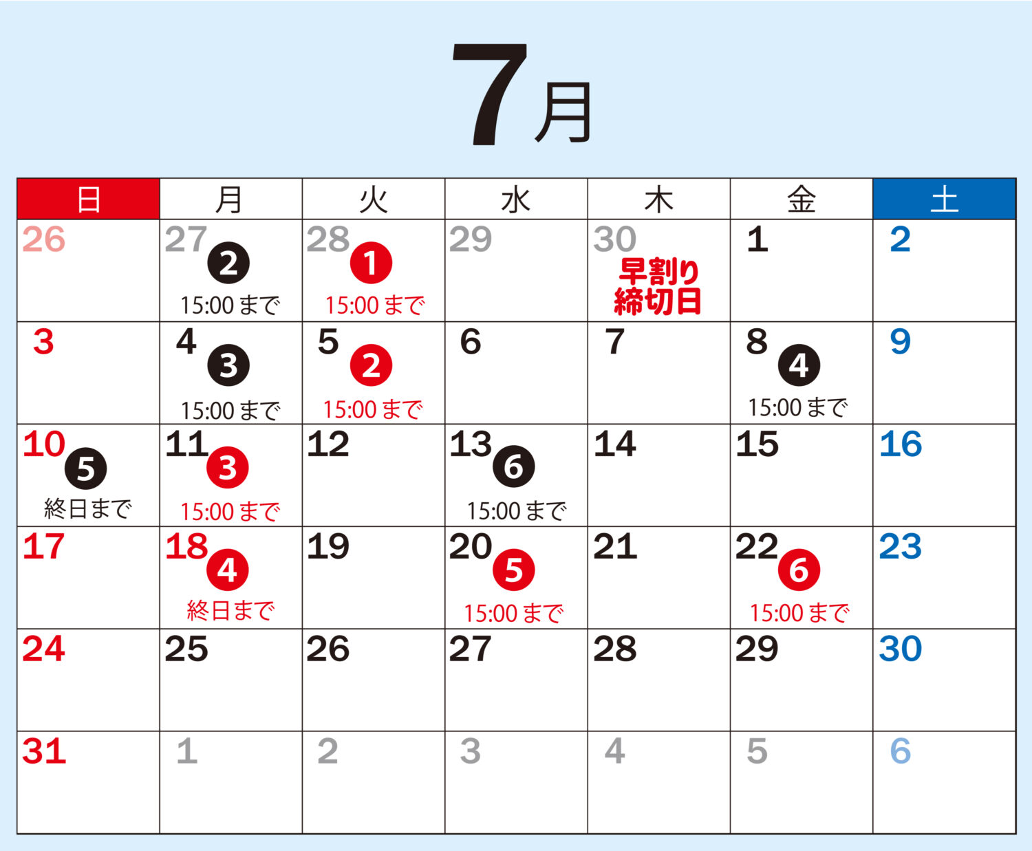 ※❷~❻・・・現物の色校正サンプル(印刷のみ)をご希望の場合の受注締切日時