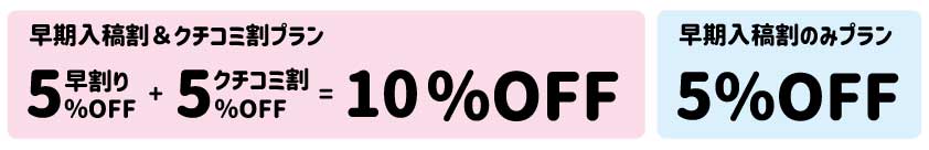 『早期入稿割引のみ』プラン クーポンコード:CFM6KMH1JF