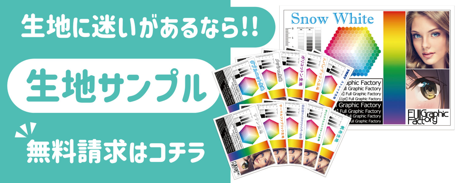 上の写真はTシャツの生地サンプル(左からメッシュ・ポリコットン・ダブルニット)となります。写真のフォントはゴシック体であり画数の少ない英字だから見えるのでは?という感じですね。