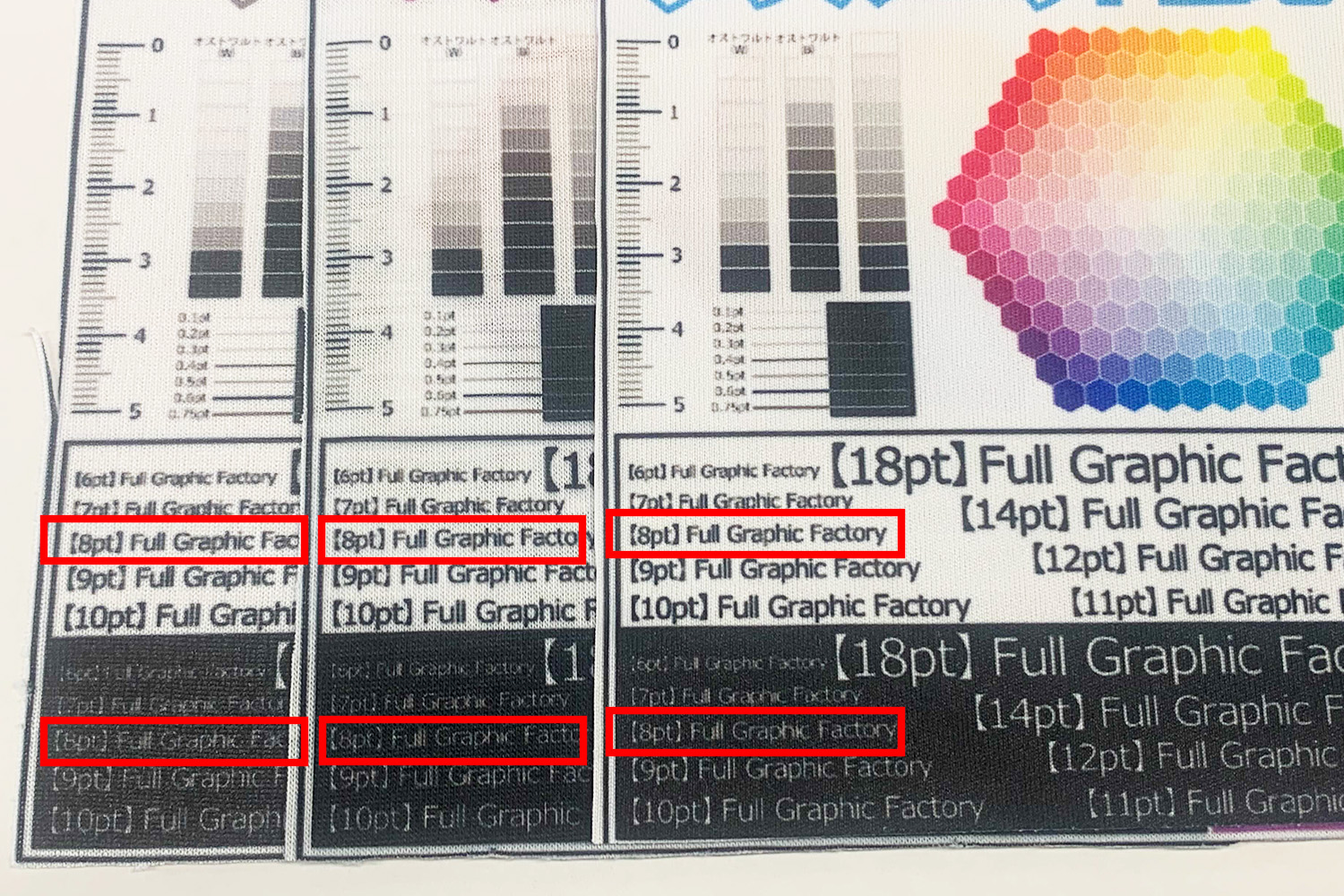 一概に8pt といっても、色や字体や生地も影響しちゃうため、意外と簡単とタイトルなものの、なかなか難しいところです(汗)
