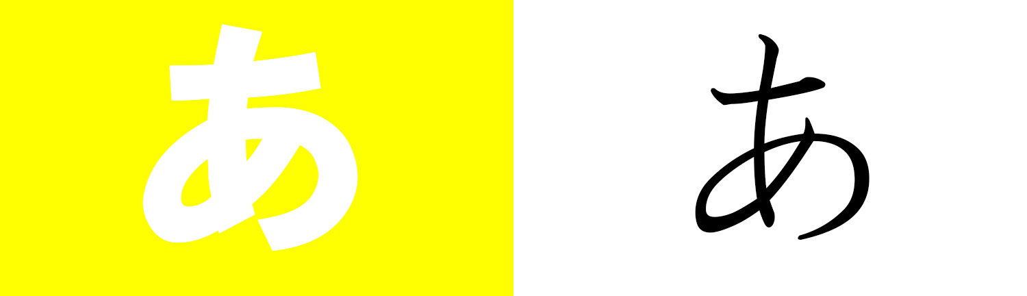 上の図「あ」を読むとき、右と左でどちらが読みやすい?と聞かれれば右の「あ」ですよね。それでも「黄色と白の組み合わせが可愛くて・・・頑張れば読める!!」と思ってもサイズや生地によって印刷されたとき、データで見た時以上に読めなくなっちゃいます。