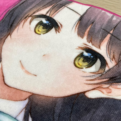 印刷精度にとことんこだわりました。 表面は凹凸や起毛がない滑らかなマイクロファイバーとなっており、印刷映えが抜群です。 裏面は吸水性も兼ね備えた起毛がある、しっかりとした厚手の生地となっています。公式ライセンスグッズにも多数使用実績のある生地となります。