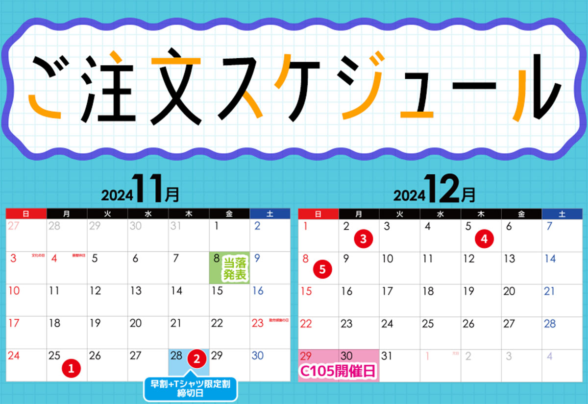 ※色校正サンプルはコミケ特別スケジュールのため(印刷のみ)だけの対応となります。色校正(印刷のみ)をご希望される場合、量産希望日の2週間前までにご注文ください。