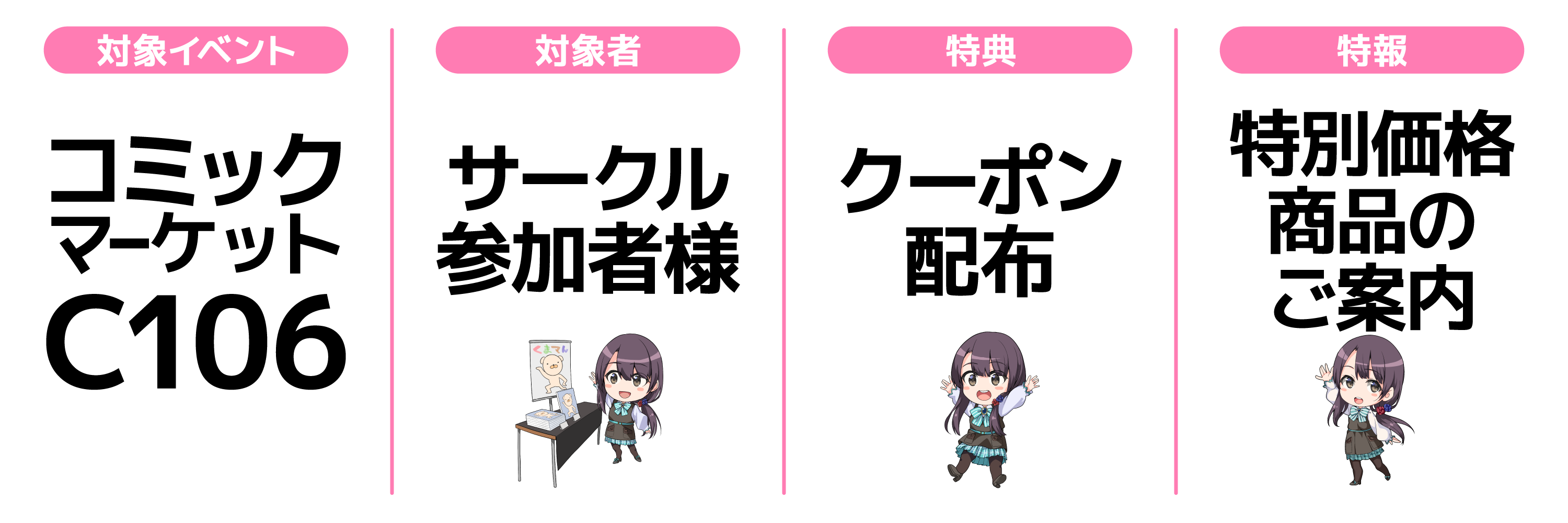 コミケC106で使える期間限定のお得なキャンペーンのご案内です