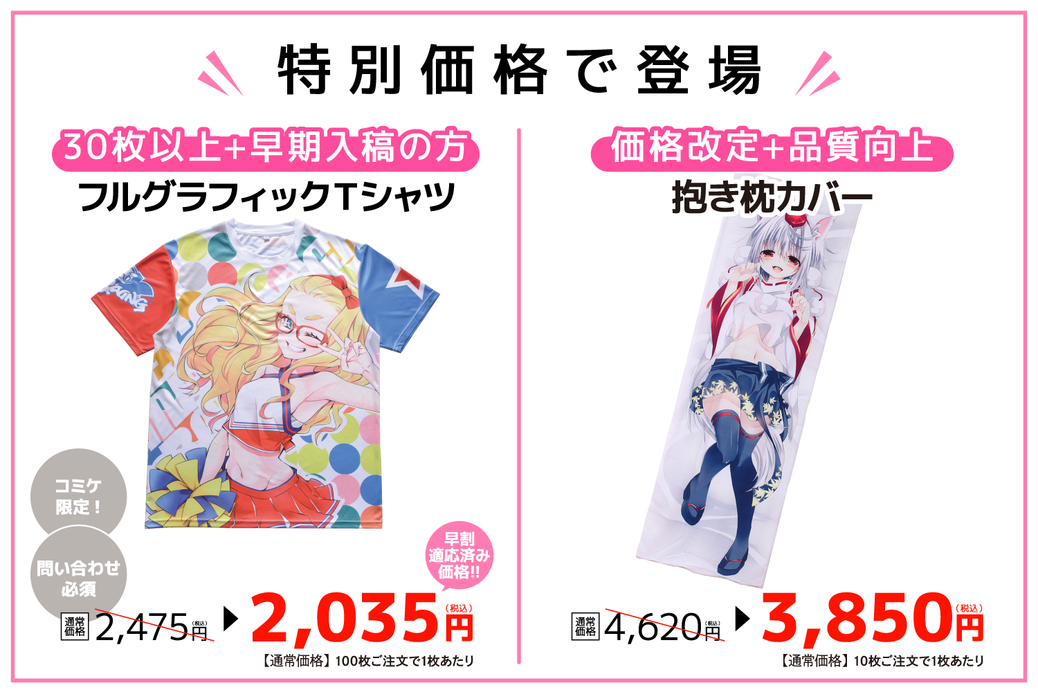 フルグラフィックTシャツはコミケ限定の特別価格となります。